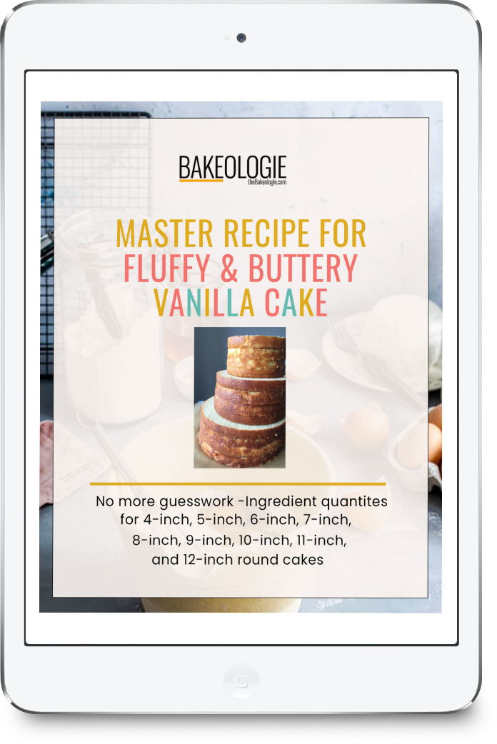 This Fluffy and Buttery Vanilla Cake is one of the most popular recipes at Bakeologie.com . Over the years, a lot of people have made and loved this cake and have been asking how to make it in different sizes. With this resource, there'll be no more guesswork - the ingredient quantities for 4-inch, 5-inch, 6-inch, 7-inch, 8-inch, 9-inch, 10-inch, 11-inch, and 12-inch round cakes are all included. The procedure to make the cake does not change.